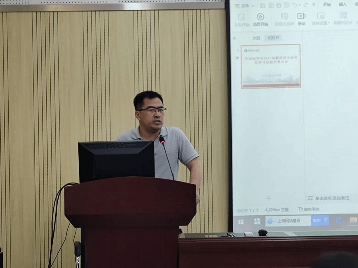 首先,姚刚老师致开幕词。他指出,翻译实习在翻译硕士培养过程中十分重要,公司对此高度重视。实习是同学们运用和检验所学理论知识的机会,可以为他们将来的就业、撰写翻译实践报告做好充分准备。他鼓励22级翻译硕士研究生明年正式实习前可以提前规划,积极尝试,不怕犯错,做足“翻译 + ”,以充分打开视野,为将来的职业生涯提前把电充足。