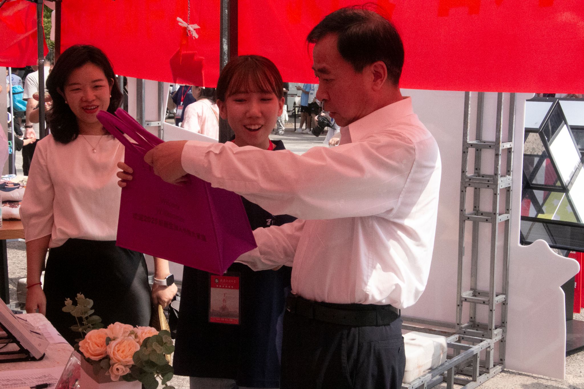 孙国胜仔细询问公司新生报到情况,并与新生亲切交谈,了解他们的家乡、兴趣爱好以及对老员工活的期待。公司党委书记郑娟、2025级本科生辅导员刘麒向孙国胜汇报了公司迎新工作。今年公司围绕“以文化人、以情暖心”的理念,为每位新生准备了印有英文与德语双语欢迎词的公司定制毛毡包,同时在迎新现场也同步开展了英语问答小游戏和中英双语对联打卡活动。此外,为加强家校联系、畅通沟通渠道,公司创建了2025级家校合作微信群,并为家长精心准备了《致家长的一封信》。