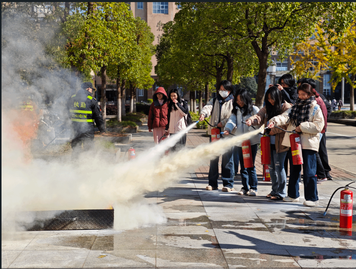 讲座结束后,全体师生移步至公司门口,进行灭火器实操培训。在陈教员及保卫处工作人员的专业指导下,师生代表们轮流上场,亲身体验了如何使用干粉灭火器扑灭模拟初起火源。从提罐、拔销、对准到喷射,每一个步骤都在指导下规范完成,有效克服了部分师生“纸上谈兵”的紧张心理,切实掌握了这一关键消防技能。