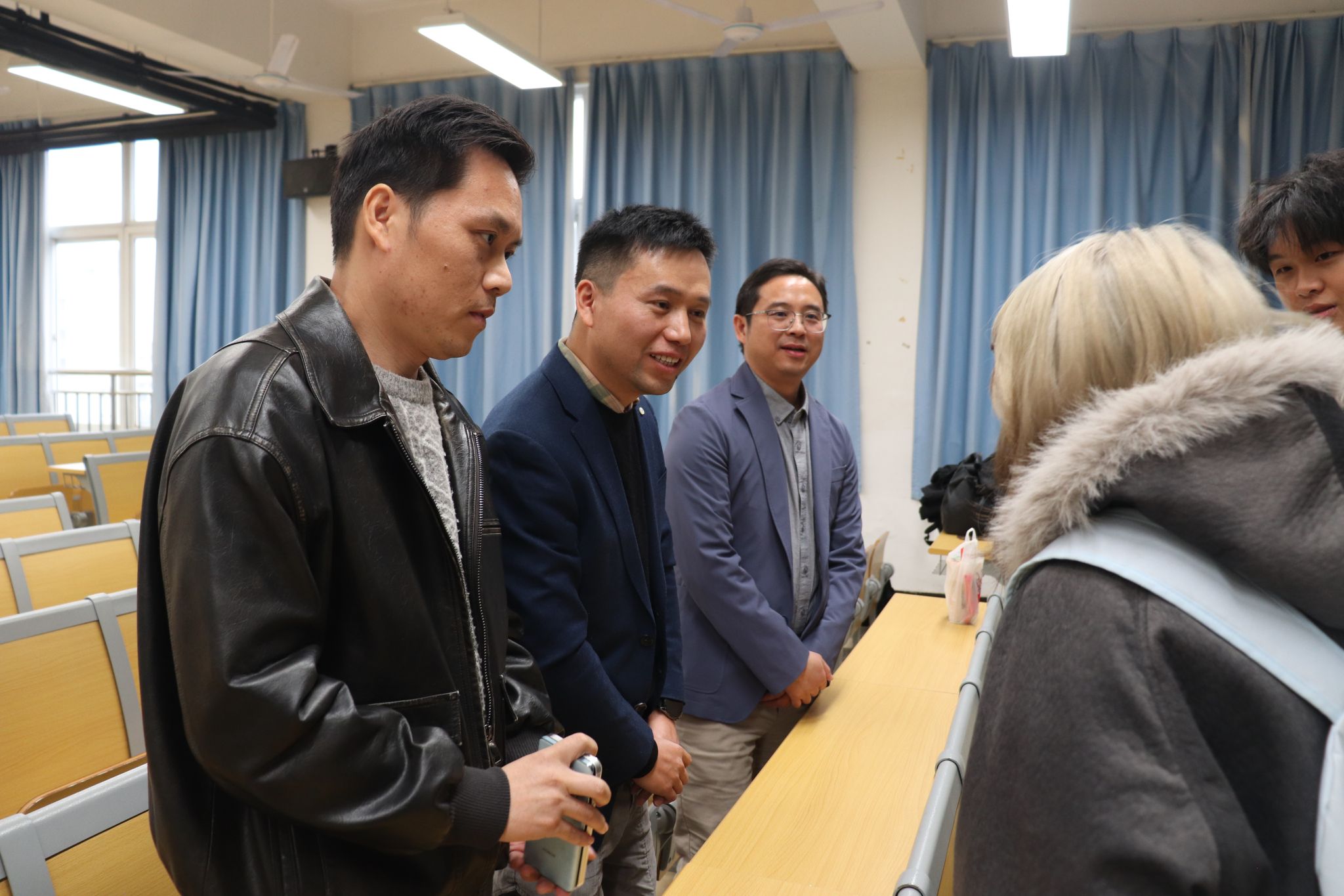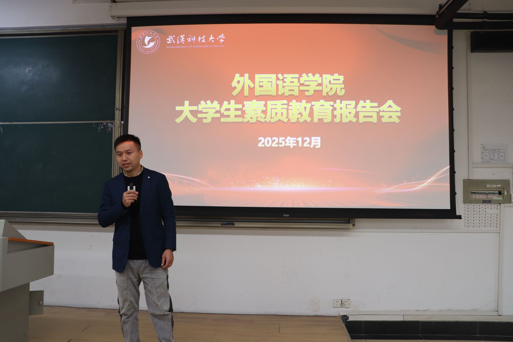 下午的报告会上,三位员工与2025级本科生围绕综合素质培养与职业发展展开深入交流。代永强结合外贸行业实践经验,分析了外语人才的持续市场需求,建议同学们通过辅修第二外语、考取专业八级等方式增强核心竞争力。吴志明分享了从外语专业成功跨入光电科技领域的经历,强调语言基础为跨领域发展提供独特优势。徐佳云则从创业视角出发,提醒同学们在专注学业的同时,积极参与社会实践,全面提升综合素养。