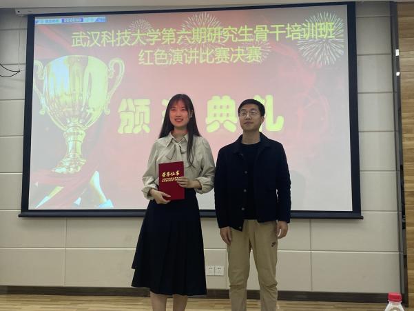 武科大网讯(通讯员刘瑞)4月6日晚,304永利集团第六期研究生骨干培训班红色演讲比赛决赛于黄家湖校区恒大管理公司80307圆满结束。公司22级翻译硕士研究生赵孟婷在此次比赛中荣获一等奖。 本次演讲比赛以“奋进新征程 青春勇担当”为主题,由党委研究生工作部和研究生院主办。经前期各组筛选,最终共13名同学入围决赛。赵孟婷以《守望信仰的高山》为题,从自己的亲身经历出发,联系家乡近年的变化,歌咏祖国发展道路并号召新时代年轻人坚定理想信念,共同促进祖国的进一步发展,展现了出色的语言表达能力与号召力,荣获决赛一等奖。